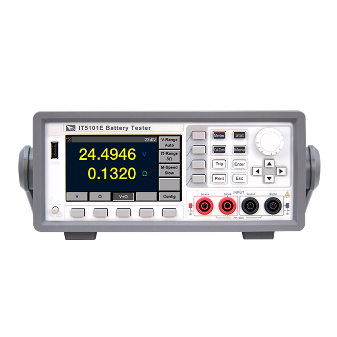 IT5100系列內阻測試儀是一款高精度、高分辨率、高速度的電池測試儀。采用交流四端子測試方法,可更準確地測試電池的內阻和電壓。IT5101/5101E電阻分辨率可達0. 1uΩ,電壓分辨率可達10uV。利用外部U盤(pán)存儲,可長(cháng)時(shí)間進(jìn)行統計運算。內建比較器功能,可自動(dòng)判斷電池參數是否符合標準,統計合格率,適合各種電池的檢測和分揀。內建USB/LAN通訊接口,支持SCPI通訊協(xié)議。IT5102單機支持16通道電池的測量,至多支持17臺儀器級聯(lián),將通道數擴展至272個(gè),對于提高測試效率有很大幫助。內建LAN / RS232通信接口,IT5100系列電池測試儀廣泛應用于手機鋰電池、蓄電池以及動(dòng)力電池等各種電池的測試 。