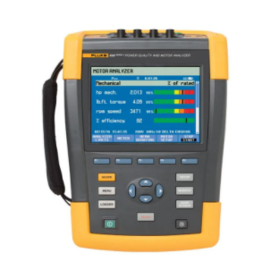 Fluke 438-II 電機效率和電氣性能綜合測試儀不僅具備 Fluke 435 II 系列電能質(zhì)量分析儀的先進(jìn)電能質(zhì)量分析功能,而且新增了電機機械測量重要功能。無(wú)需使用機械傳感器即可快速輕松地測量和分析電能、諧波、不平衡度、電機轉速、轉矩和機械功率等關(guān)鍵機電性能參數。通過(guò) Fluke-438-II/MA 電機分析儀升級套件,Fluke 434-II、435-II 和 437-II 電能質(zhì)量分析儀的用戶(hù)可為其現有設備增加電機分析功能。438-II 使用來(lái)自 NEMA 或 IEC 額定電機的電機額定值板的數據幫助計算機械參數。