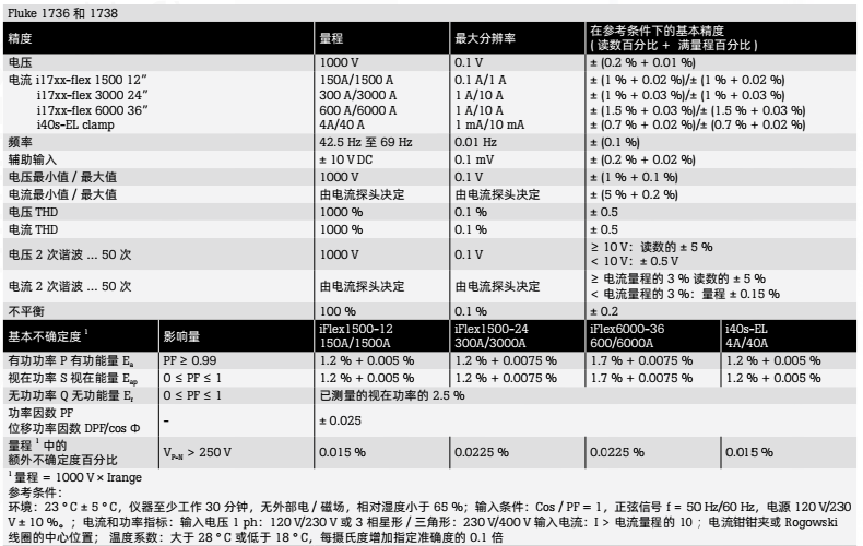 Fluke 1736 和 1738包括: