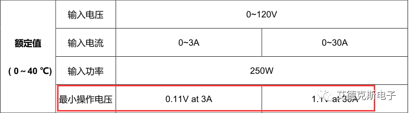 由于晶體管Vce在0V的狀態(tài)下不會(huì )工作,所以電子負載裝置都規定了最低工作電壓(圖二),如上圖一示例,電池負電壓狀態(tài)下放電,電子負載會(huì )報錯,試驗無(wú)法繼續進(jìn)行。