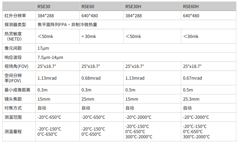 ●最大-20℃~2000℃測溫量程(RSE30H/60H),覆蓋不同應用領(lǐng)域