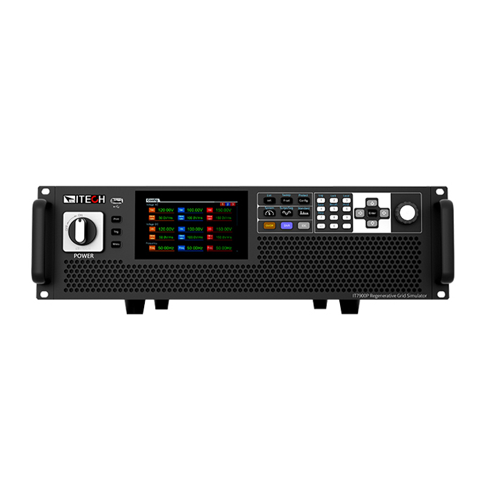 IT7900P系列高性能回饋式電網(wǎng)模擬器提供用戶(hù)領(lǐng)先的一體化測試解決方案,它可以是一臺大功率交流電源,也可以作為電網(wǎng)模擬器和全四象限功率放大器使用,同時(shí)也是一臺回饋式的交/直流電子負載。全四象限運行,高效的回饋能力可以將電能無(wú)污染的回饋電網(wǎng),滿(mǎn)足環(huán)保需求的同時(shí)也節省了大量用電和散熱成本。緊湊式、模塊化、高效率的結構設計,使IT7900P可以在3U的體積內提供15kVA的功率,主從并聯(lián)更可擴展功率至960kVA。采用基于彩色觸摸屏的用戶(hù)界面,可以直接定義不同波形,豐富的操作模式滿(mǎn)足用戶(hù)單相,三相,反相及多通道測試需求,為測試提供了較高的靈活性,可以廣泛應用于光伏、儲能系統、新能源汽車(chē)等多個(gè)領(lǐng)域。