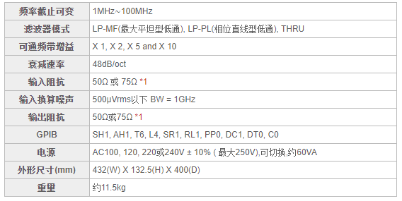 ●輸入放大增益:可進(jìn)行1、2、5、10倍切換在THRU模式下,也可作為DC~100MHz的前