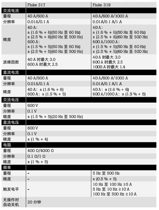 ● 1000 A 交流 / 直流電流測量 ( 僅 Fluke 319)