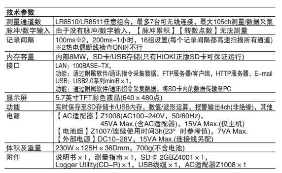 詳細使用說(shuō)明書(shū)×1,測量指南×1,SD存儲卡2GB Z4001 ×1,Logger Utility (CD-R) ×1,USB連接線(xiàn)× 1,AC適配器Z1008 ×1