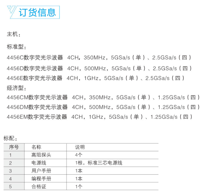 4456系列數字熒光示波器分為標準型4456C/D/E和經(jīng)濟型4456CM/DM/EM。示波器和數字電壓表功能為標配,邏輯分析儀、函數發(fā)生器及總線(xiàn)分析儀為選配。