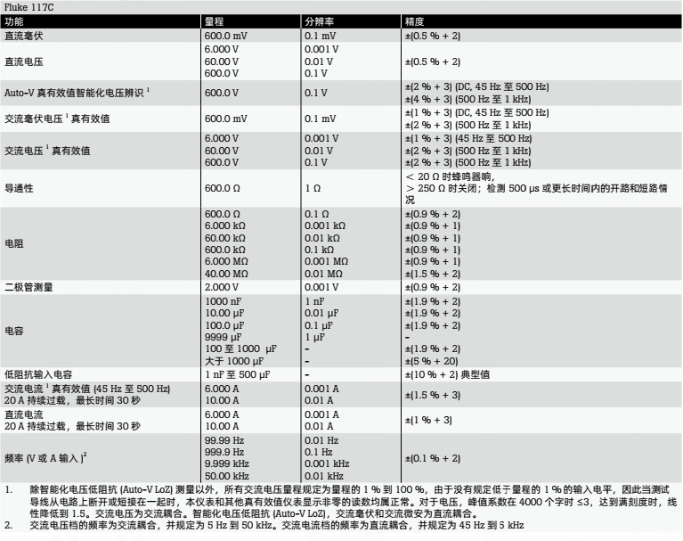 Fluke 117C包括: