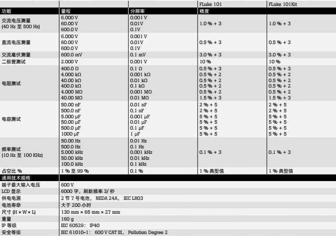 型號: Fluke 101/101Kit 數字萬(wàn)用表包括: