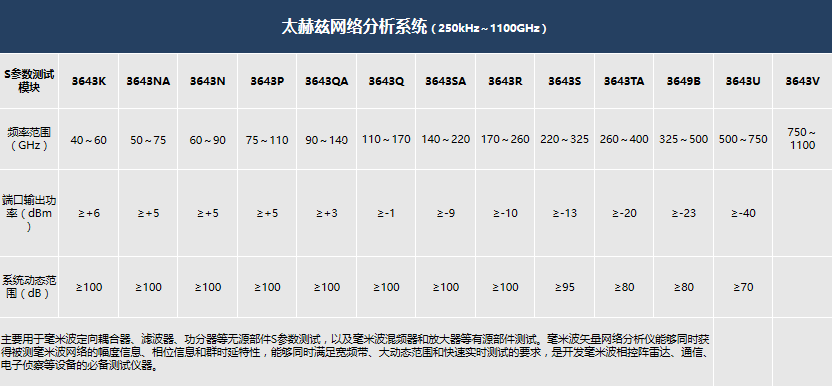 ●頻率覆蓋40GHz~500GHz