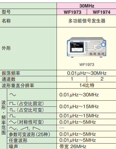 WF1973/WF1974具有高超的技術(shù)指標,對各種各樣的應用可提供高穩定性、 高可靠性、高精度的信號,包括高超的頻率精確度和振幅精確度、 精細的設定分辨率等。