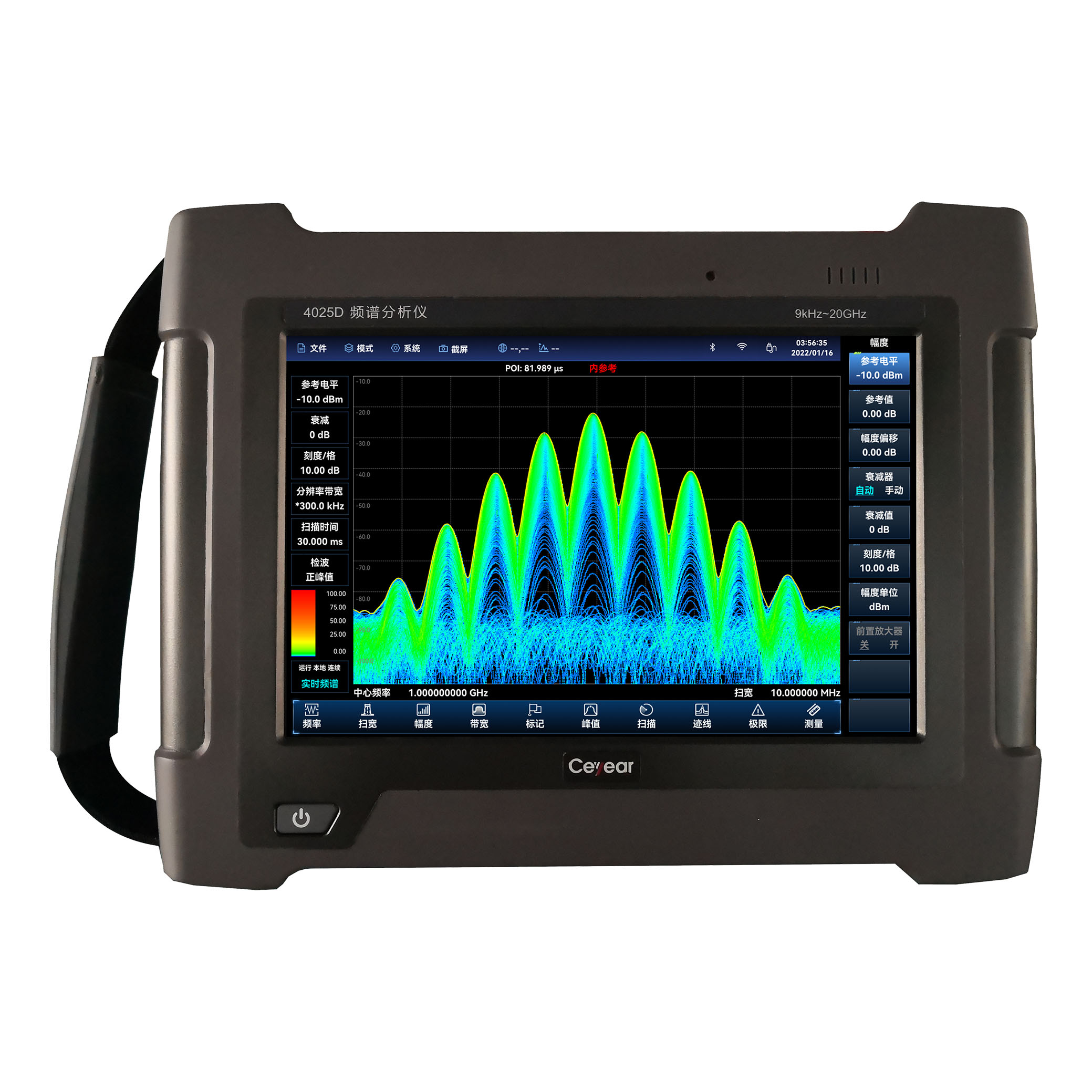 Ceyear 4025頻譜分析儀系列化產(chǎn)品頻率測量范圍覆蓋9kHz~54GHz,主要用于外場(chǎng)無(wú)線(xiàn)通信設備的安裝調試、維護保障及干擾排查等場(chǎng)合,具有體積小、重量輕、環(huán)境適應性強、供電靈活、操控方便等特點(diǎn)。