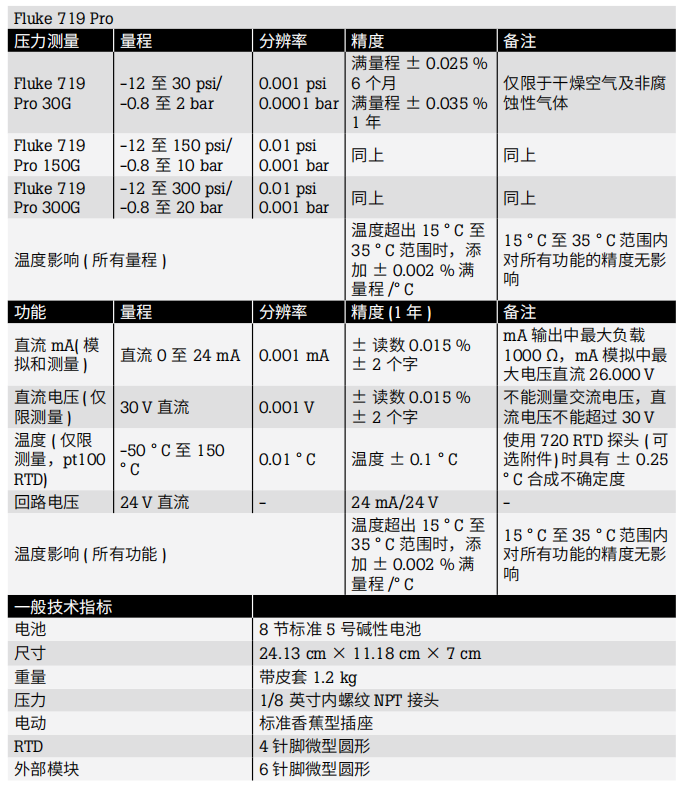 Fluke 719Pro包括: