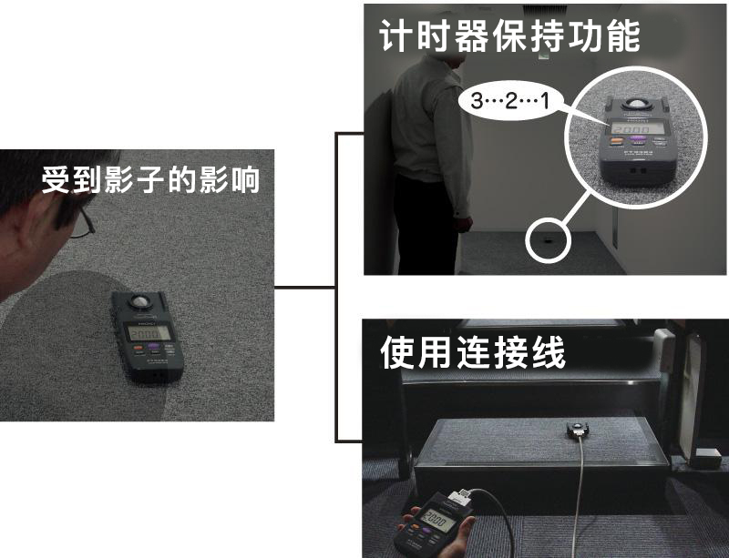 能夠在遠離照度計的地方進(jìn)行測量,所以不會(huì )受到操作者的衣服或影子等的影響。