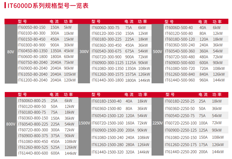 ●單機電壓80V ~ 2250V 、電流30A ~ 2040A 、功率5kW-144kW