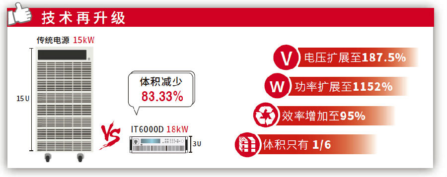 相較于傳統固定范圍輸出直流電源,IT6000D系列在功率區間內,各種電壓、電流的組合都能夠以全功率輸出,單臺電源涵蓋傳統電源3~5臺的應用,三臺電源則可覆蓋傳統10~13臺,大幅降低電源系統搭建的復雜度及占用空間。