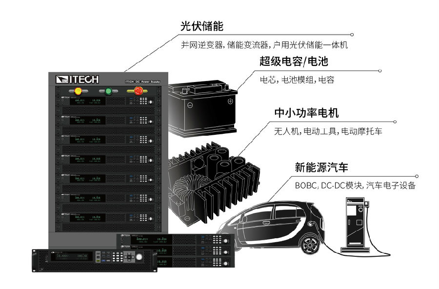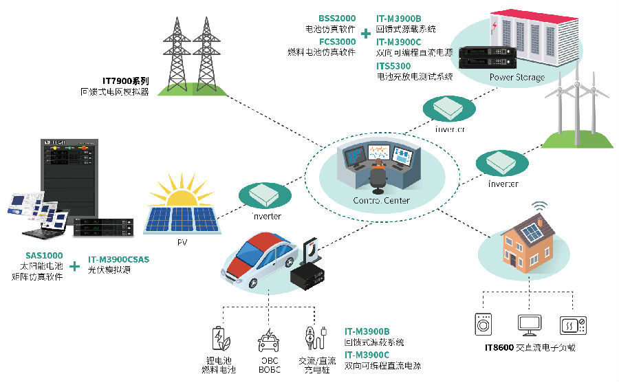 IT-M3900C作為一臺電池模擬器,不但以模擬電池給給逆變器供電,同時(shí)也可以滿(mǎn)足儲能變流器(PCS)、各類(lèi)儲能設備以及OBC/BOBC的測試需求。
