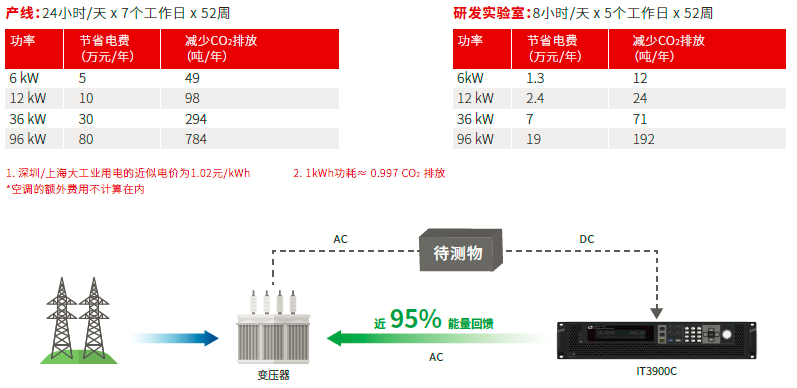 IT-M3900C具有能量回收功能,可以將電能無(wú)污染的回饋電網(wǎng),回饋近95%。所有的回饋過(guò)程都是自動(dòng)且安全的,IT-M3900C配備了自動(dòng)電網(wǎng)檢測系統,實(shí)時(shí)檢測相電壓、頻率用于電網(wǎng)同步。不但可以節省電力、暖通空調和制冷設施的成本,減少噪音,而且有助于減少碳排放,保護環(huán)境。