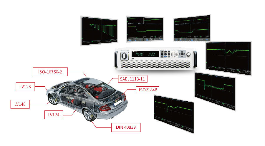 ● 內置LV123、LV148、DIN40839、ISO-16750-2、SAEJ1113-11、LV124和ISO21848標準汽車(chē)功率網(wǎng)用電壓曲線(xiàn)