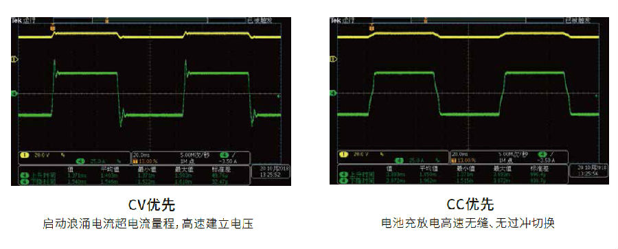 IT6000B系列延續ITECH提出的CC/CV 優(yōu)先權概念,持續幫助用戶(hù)解決長(cháng)期測試應用中的各種嚴苛問(wèn)題,使需求電源高速或者無(wú)過(guò)沖等應用,變得更加靈活。用戶(hù)可以選擇CC/CV 環(huán)路的響應速度以及環(huán)路工作模式,來(lái)決定輸出是電壓高速模式還是電流無(wú)過(guò)沖模式,適用于諸如大功率集成電路的測試、充放電測試和汽車(chē)電子的電源瞬變仿真和表征等。