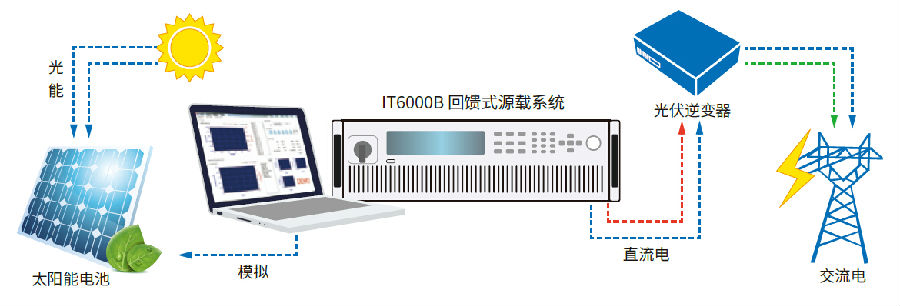 IT6000B系列選配SAS1000太陽(yáng)能電池矩陣仿真軟件,可以仿真太陽(yáng)電池矩陣的I-V曲線(xiàn),內建EN50530、Sandia、NB/T32004、CGC/GF004、CGC/GF035的SAS模型,用戶(hù)簡(jiǎn)單設定參數后,即可模擬I-V曲線(xiàn)輸出并生成報表,用于測試光伏逆變器的靜態(tài)和動(dòng)態(tài)最大功率追蹤效能。用戶(hù)還可以編輯任何屏蔽最多可達4096個(gè)點(diǎn)的I-V曲線(xiàn)實(shí)現動(dòng)態(tài)云遮效果,或存儲100條不同光照、溫度下的I-V曲線(xiàn)于內存,并設定每條曲線(xiàn)執行時(shí)間及執行順序,以此來(lái)測試光伏逆變器在不同氣候條件下的長(cháng)時(shí)間最大功率追蹤效能。