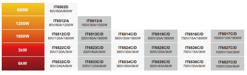 IT6500系列寬范圍大功率直流電源提供給用戶(hù)非常寬廣的選擇范圍,全系列包含從800W到6kW,以及高達1000V、240A的輸出范圍,同時(shí)擁有超寬的電壓、電流使用范圍。不但有豐富測量功能、高速響應的IT6500C系列,同時(shí)也提供高性能、穩定輸出的IT6500D系列,用戶(hù)可以根據需求,輕松選擇。其應用領(lǐng)域包括汽車(chē)、綠色能源、高速測試、大功率測試等多個(gè)方面,是一款功能豐富、性能優(yōu)異、適用廣泛的直流電源。
