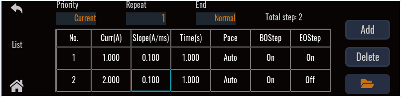 通過(guò)編輯每一步的電壓、電流、脈寬和斜率,可以生成多種復雜序列,讓用戶(hù)完成各種帶載波形的測試,導入或導出編輯好的文件。