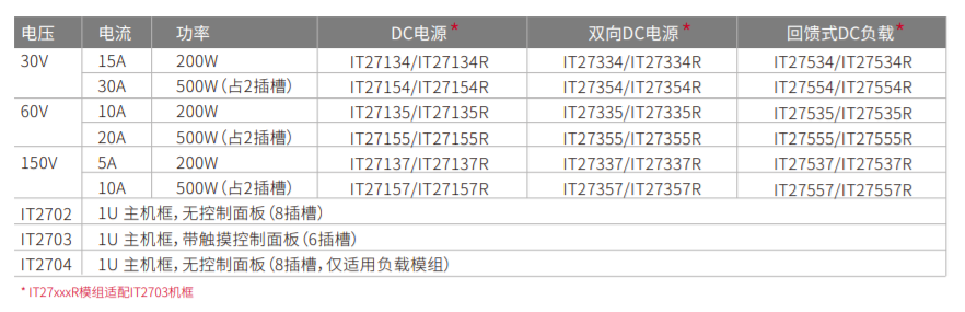 ● 兩種1U機框,三種模塊(單向源,雙向源,回饋載)