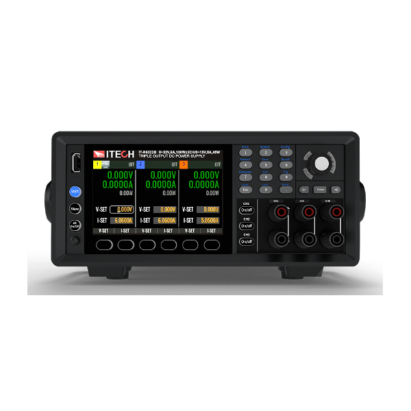 IT-N6300系列是艾德克斯最新研發(fā)的高性能三通道可編程直流電源,集成在標準? 2U機箱內,每個(gè)通道均獨立配置開(kāi)關(guān),支持自動(dòng)串并聯(lián)及同步功能,結合寬范圍輸出設計,為用戶(hù)提供多用途測試解決方案。配備4.3英寸高清LCD顯示屏,支持清晰直觀(guān)的通道參數設置、測試程序編輯及曲線(xiàn)觀(guān)測,并采用1mV/0.1mA的高分辨率顯示,滿(mǎn)足用戶(hù)對高精度電壓和電流輸出的嚴苛要求。