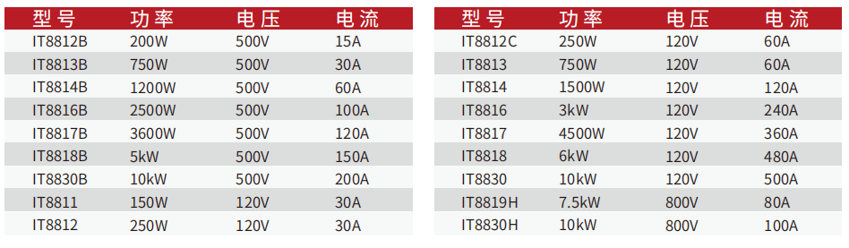 IT8800系列直流電子負載擁有寬廣的功率范圍150W-10KW,電壓電流測量速度均達到50KHz,測試分辨率可達0.1mV/0.01mA,測試電流上升速度0.001A/us~2.5A/us可調,且內置RS232/GBIP/USB通訊接口,參數指標好,產(chǎn)品穩定性高,應用行業(yè)寬泛,能滿(mǎn)足各種測試需求,目前已經(jīng)應用于多種要求苛刻的測試場(chǎng)所,例如LED照明,汽車(chē)電子等多種領(lǐng)域。